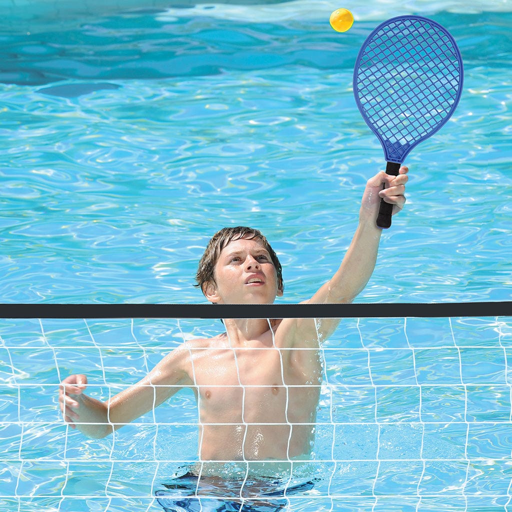 The Wahu 3-in-1 Game Pack combines 3 popular pool games in one convenient package for hours of outdoor fun! Contains everything you need for Basketball, Volleyball and Paddle Ball - no tools required! Its heavy-duty design with tough, UV treated materials and are built to last in the Aussie heat, are easy to set up - simply fill the bases and uprights with water for stability. Ready for a game of basketball? Easily convert a volleyball base to a basketball backboard, and you're ready to play! Includes 1 Basketball, 1 Volleyball, 2 Paddles, 2 Paddle Balls, 1 Basketball Hoop & Net (45.5"/115.6cm tall), 2 Bases/Backboards (28"/71.1cm width), 1 Volleyball Net (18'/5.5m) and 2 Uprights. Recommended for ages 6 and up.